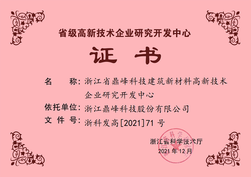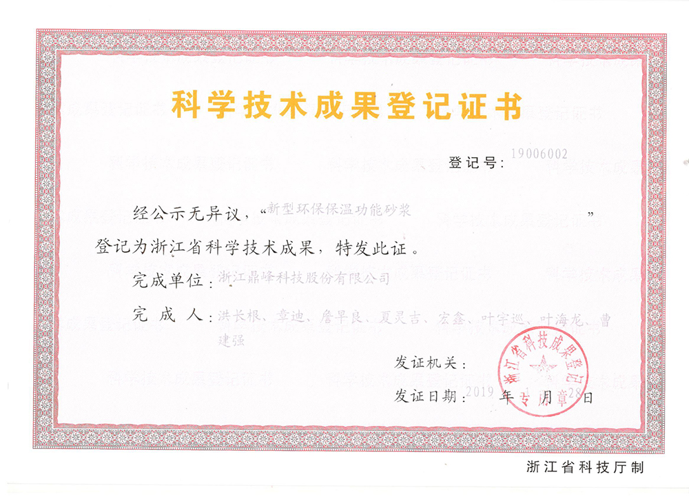 公司為國家級“專精特新”小巨人企業(yè),國家級高新技術(shù)企業(yè),擁有與多家高校聯(lián)合組建的省級研發(fā)中心。公司經(jīng)浙江省散裝水泥發(fā)展中心、浙江省建筑業(yè)管理局備案,為浙江省首批通過試驗室驗收的企業(yè)。近年來公司陸續(xù)通過了質(zhì)量管理體系認證、干混砂漿產(chǎn)品認證、環(huán)境管理體系認證、能源管理體系認證、職業(yè)健康管理體系認證、中國綠色建材產(chǎn)品認證、工業(yè)化與信息化融合管理體系評定。自2017年起公司已連續(xù)五年被中國建筑材料聯(lián)合會預拌砂漿分會評為“全國預拌砂漿行業(yè)先進企業(yè)/優(yōu)秀企業(yè)/最具推動力企業(yè)”。